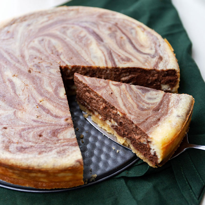 Een heerlijke chocolade cheesecake met krokante (gluten vrije) bodem.